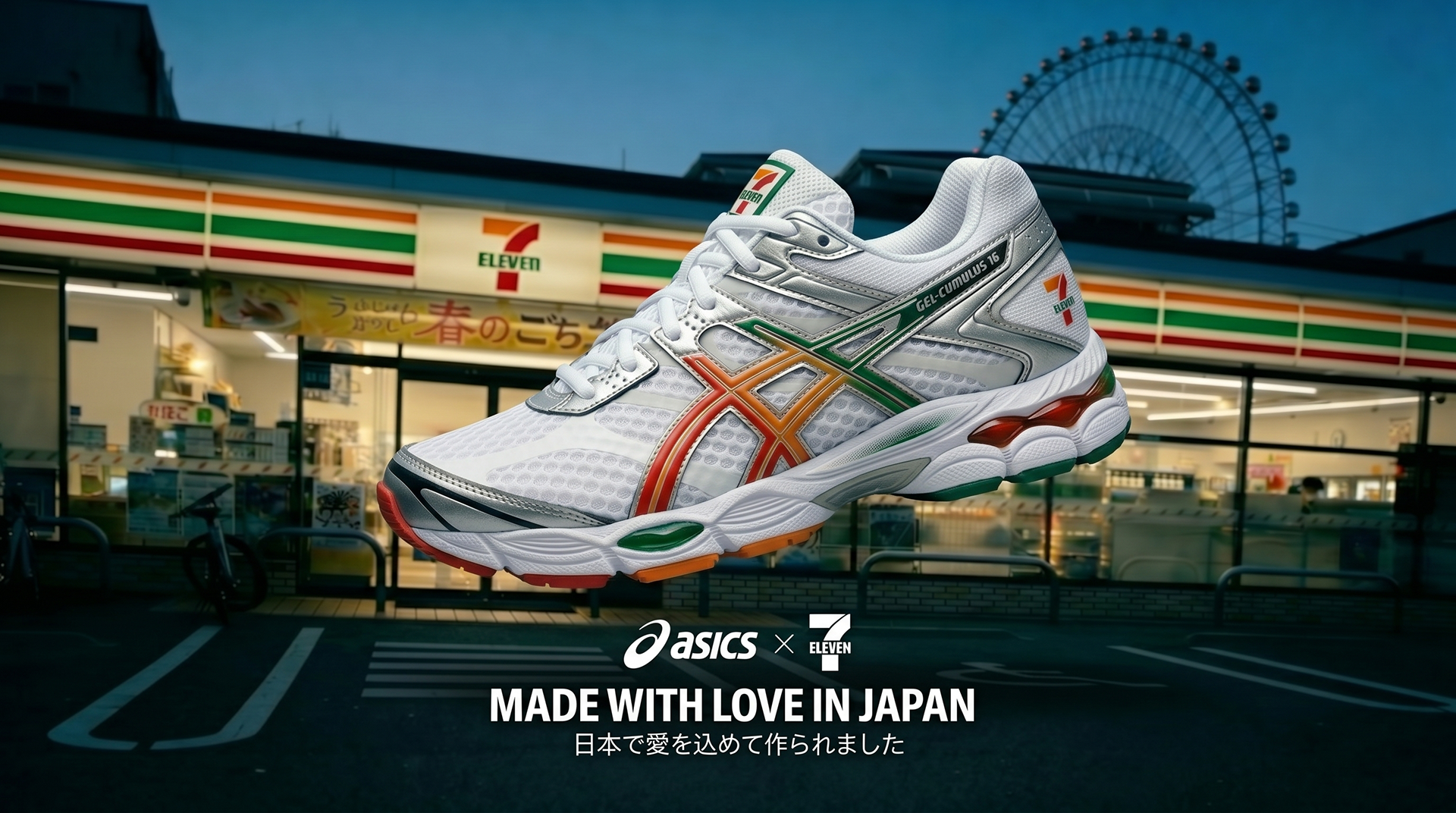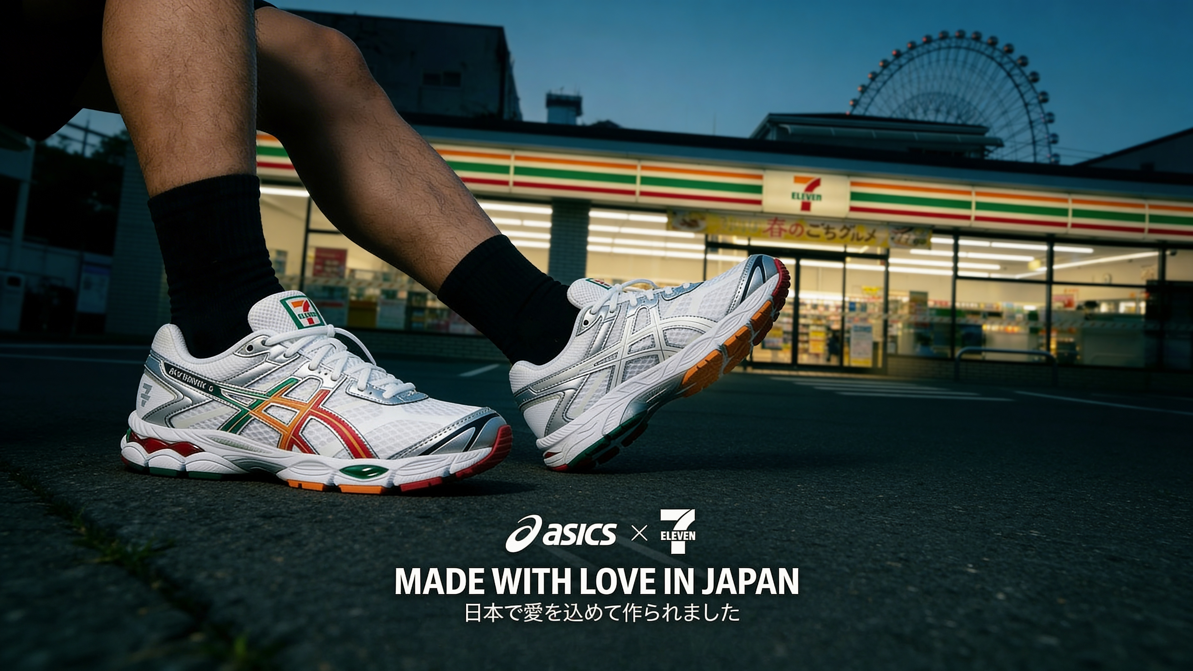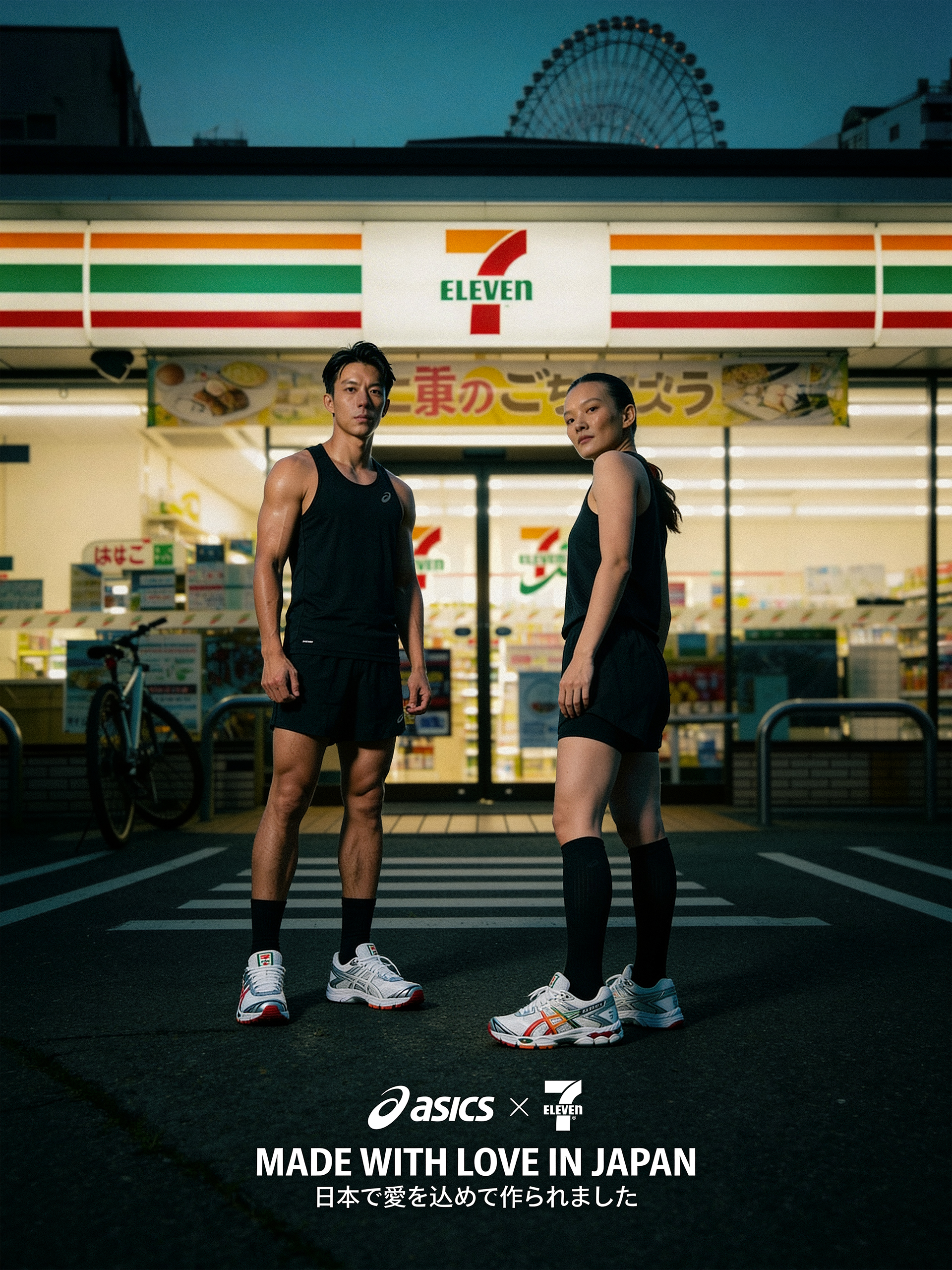 Für diesen Showcase haben wir eine fiktionale Traum-Kollaboration zwischen Asics und 7-Eleven ("Made with Love in Japan") kreiert. Ziel war es, die ikonischen Markenfarben nahtlos in einen klassischen Retro-Runner zu integrieren und die unverwechselbare Atmosphäre Japans einzufangen.